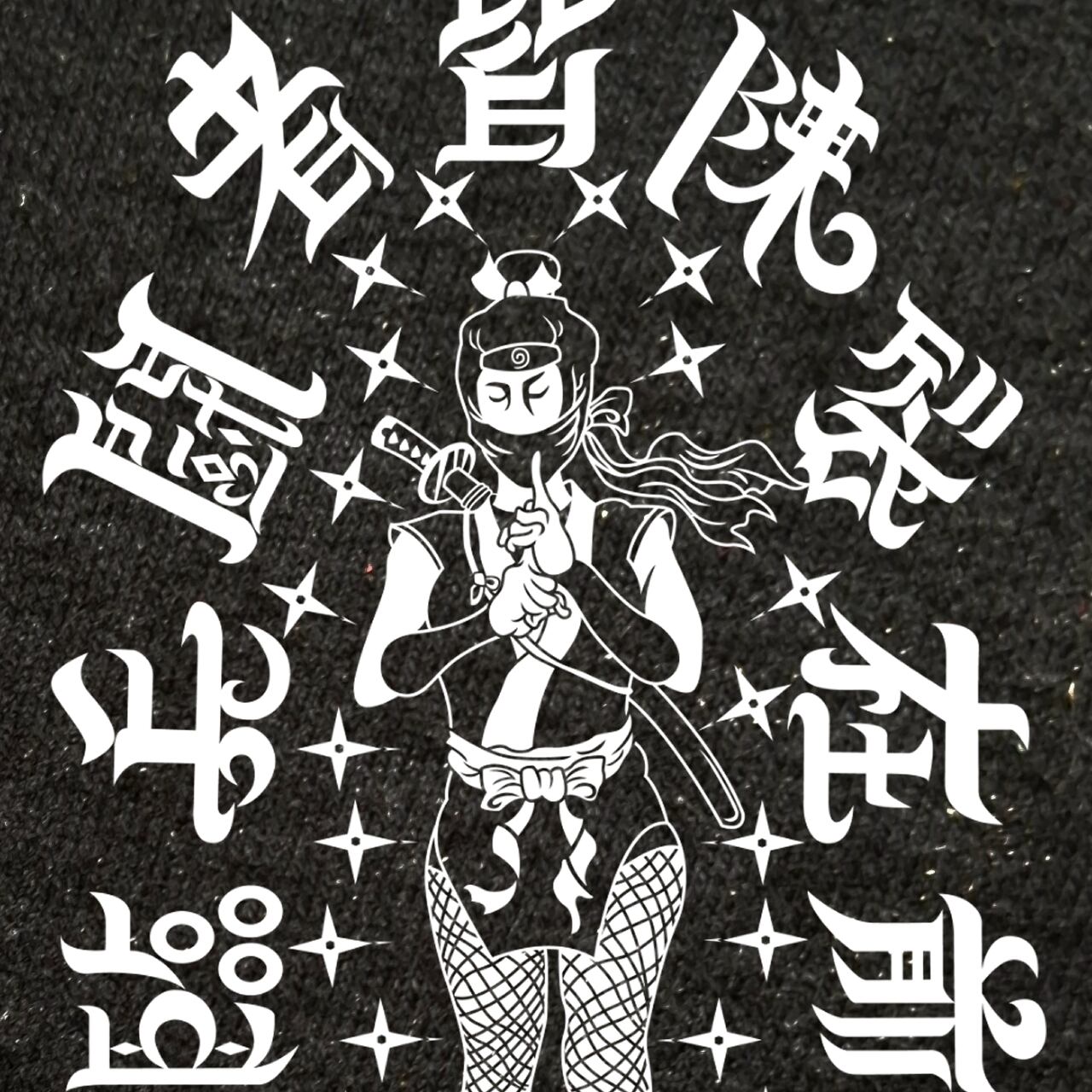 印を結ぶ、くのいち忍者のイラストです。九字護身法の臨兵闘者皆陣列在前のロゴもデザインしてみました。これで病魔や災厄を遠ざけることができたらいいですね。